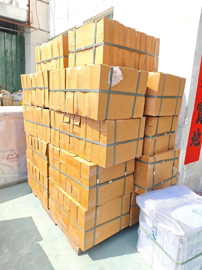 A be-, ki- és rögzítés megkönnyítése érdekében a nagy távolságú tengeri szállítás során több kartondobozt szépen egymásra raknak fertőtlenített fa raklapokra, és minden szempontból nagy szilárdságú csomagolópántokkal és sztreccsfilmekkel megerősítve stabil szállítóegységet alkotnak.